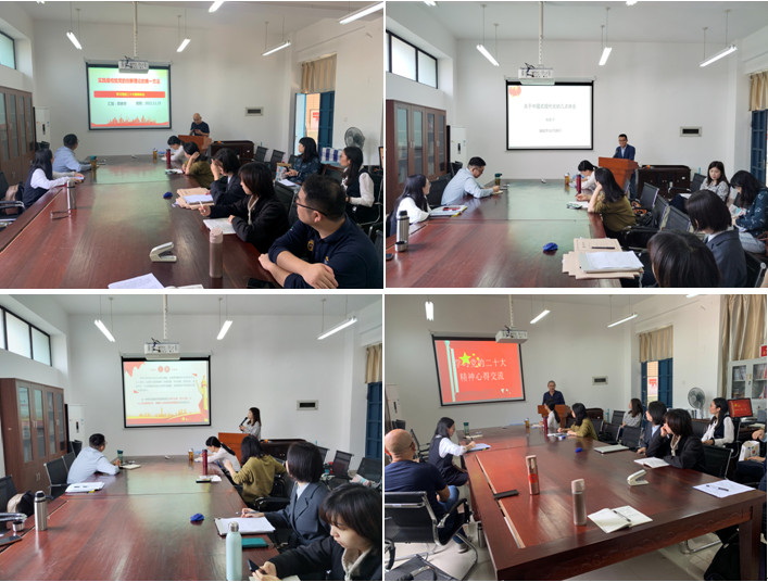 学习会上,四位重点发言的党员同志依次与党员们分享了学习党的二十大精神的心得体会。郑孝华老师以《实践是检验党的创新理论的唯一方法》为题,从“我们是谁”“我们做了什么”“我们怎么对待实践”“我们的实践资源库有哪些”四个方面层层递进,对现有论证范式进行分析,对遵循“实践是检验真理的唯一标准”的方式提出建议,探讨思政课的实践途径及效果,展望学科发展前景。林胜平老师从历史逻辑、实践逻辑、理论逻辑和文明意蕴四个维度深刻阐释中国式现代化具有的本质要求和重要特征。陈彬老师从“中国特色社会主义是新征程上高举的伟大旗帜”“习近平新时代中国特色社会主义思想是新征程上党和国家必须全面贯彻的根本指导思想”“伟大建党精神是新征程上必须传承发扬的强大精神法宝”“全面建设社会主义现代化国家、全面推进中华民族伟大复兴是新征程上必须坚定实现的伟大目标”四个角度全面解读党的二十大主题的深邃意蕴。蔡珍美老师从“全链条、全方位、全覆盖的过程民主”“管用的制度体系”“人民评判的唯物史观标准”三个层面分析全过程人民民主对西式民主的超越。