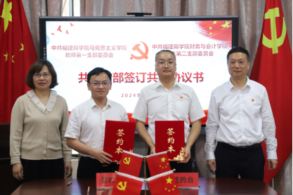4月23日,beat365正版唯一官网必一教师第一党支部与财务与会计学院学生第二党支部在连江校区举行党建结对共建签约仪式暨联合学习活动。beat365正版唯一官网必一党委书记、院长林萍及副院长、教师第一支部书记谢东俊,财务与会计学院党委副书记(主持工作)毛茂山及党委委员、副院长蔡秋玉,结对支部师生共30余人参加了活动。