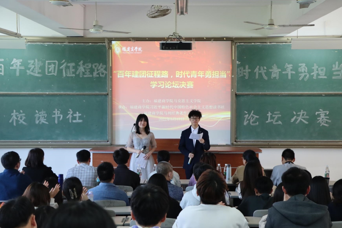 2022年5月17日下午,校习近平新时代中国特色社会主义思想读书社和校马列经典著作读书社在连江校区诚信楼中阶三举办主题为“百年建团征程路,时代青年勇担当”的学习论坛决赛。校党委副书记吴访益、beat365正版唯一官网必一部分教师及二级学院读书社相关指导老师、校读书社成员近200人参加了本次活动。