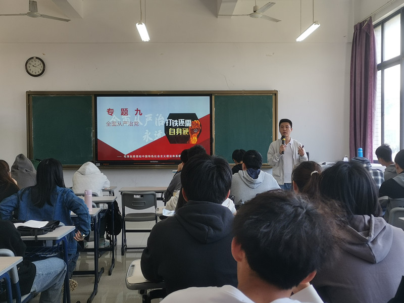 5月18日上午,beat365正版唯一官网必一毛泽东思想和中国特色社会主义理论体系概论教研室赵敏老师以“全面从严治党”为主题,在连江校区诚信楼411举行了思政课教学示范活动,近60名师生参与观摩。