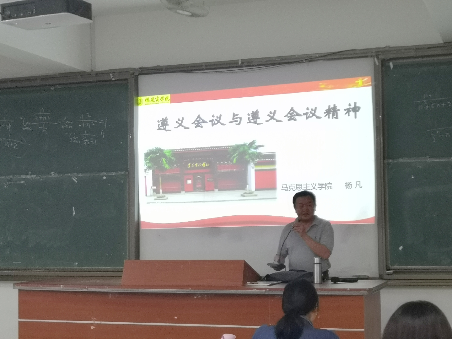 5月18日下午,马克思主义理论大讲堂邀请beat365正版唯一官网必一杨凡老师作题为“遵义会议与遵义会议精神”的专题讲座。部分beat365正版唯一官网必一教师和马克思主义理论大讲堂成员参加了此次讲座。