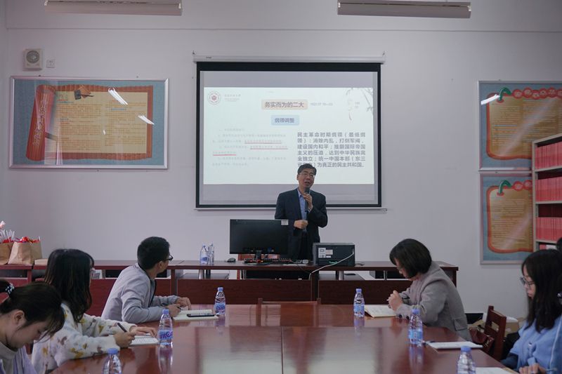 为认真学习贯彻落实习近平总书记在党史学习教育动员大会上的重要讲话精神,推动学校师生深入学好党史、新中国史、改革开放史、社会主义发展史,3月13日上午,闽南师范大学beat365正版唯一官网必一院长陈再生教授应邀莅临beat365官网开展题为“跟随大会学党史”的专题讲座。beat365正版唯一官网必一部分教师以及校习近平新时代中国特色社会主义思想读书社社员聆听了讲座。