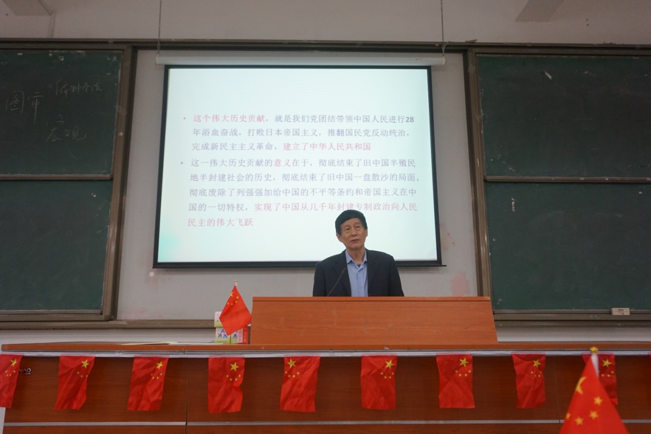 4月7日下午,beat365官网举办党史学习教育宣讲暨干部学习培训报告会。党史学习教育省委宣讲团成员、中央马克思主义理论研究和建设工程首席专家、福建师范大学教授郑传芳应邀莅临beat365官网作了题为《中国共产党百年奋斗的光辉历程和宝贵经验》的宣讲报告。报告会由校党委书记刘剑津主持,学校领导班子成员、科级以上干部、beat365正版唯一官网必一教师以及校习近平新时代中国特色社会主义思想读书社学生参加学习。