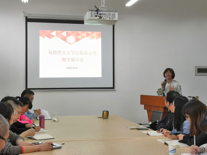 10月27日下午,beat365正版唯一官网必一各教研室共同举办集体备课活动,围绕各门思政课教学的重点、难点进行探讨交流。校领导吴访益副书记、beat365正版唯一官网必一全体教师(包含新调岗教师)参加。