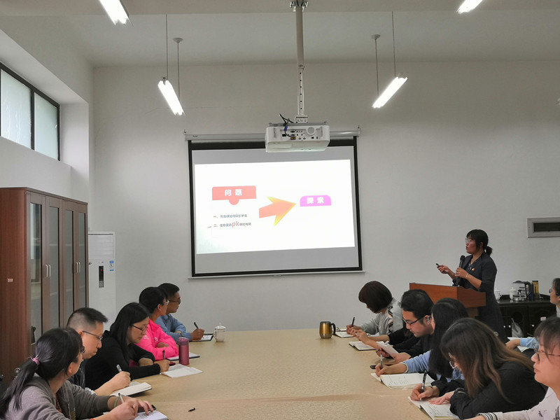 思想道德与法律基础教研室蓝福秀主任以“全面依法治国的基本格局”为主题,通过依法治国新旧十六字方针对比,对其的内涵与外延作了深入剖析,加深了在场教师对全面依法治国的认识。余文好博士作了精彩点评,认为“基础课”在讲授过程中应运用大量社会案例,将理论与实际相结合,提升学生对理论的信服度,利用不同教学方法去激发学生的学习兴趣。