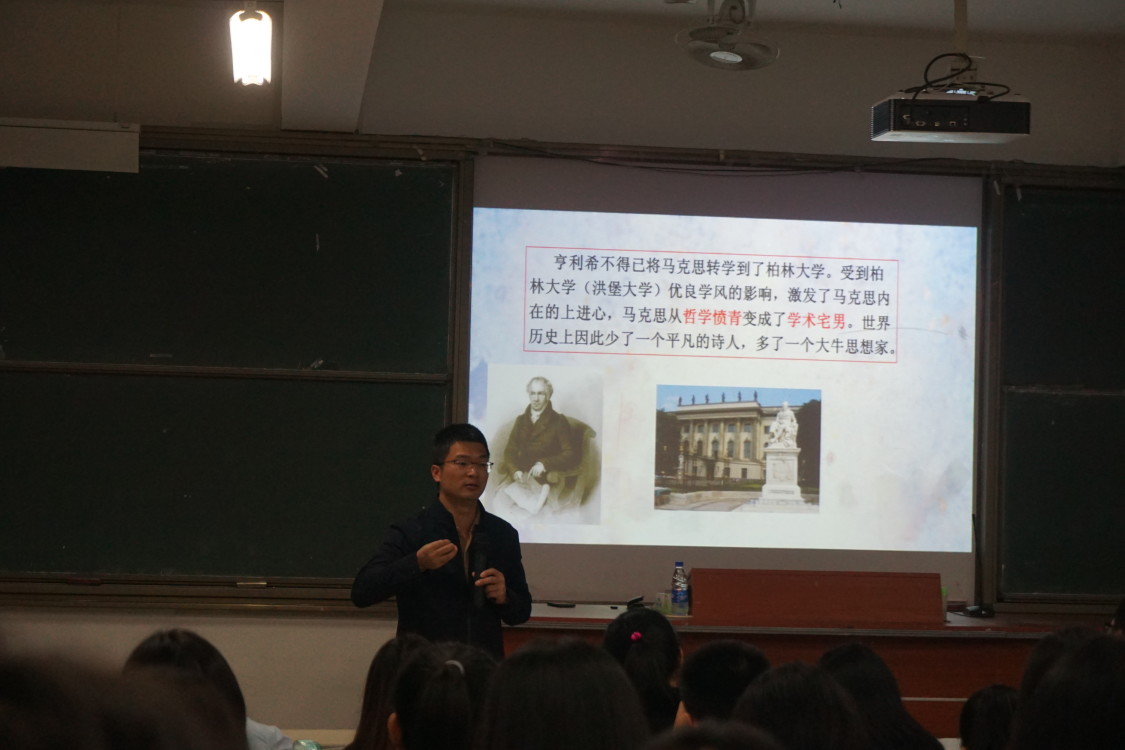 11月3日晚,福建江夏学院beat365正版唯一官网必一副院长曾正滋教授莅临beat365官网作题为“走进青年马克思”的专题讲座。beat365正版唯一官网必一部分教师,校习近平新时代中国特色社会主义思想读书社成员、校记者团成员共近150人聆听了讲座。