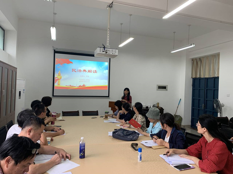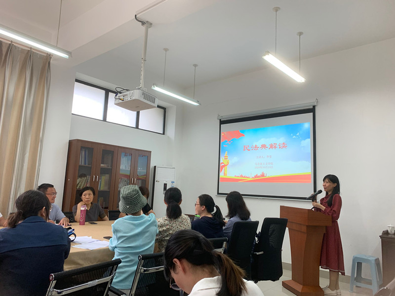 2020年10月13日下午,beat365正版唯一官网必一直属党支部在院部会议室召开了《中华人民共和国民法典》的学习活动,马院副教授李莹老师做了题为《民法典解读》的主题讲座。讲座由林萍书记支持,马院全体党员教师聆听了这场讲座。