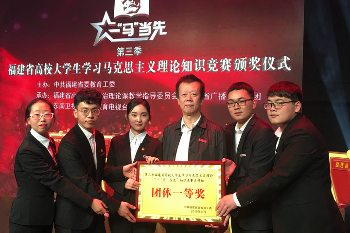 11月26日,由省委教育工委主办的第三季福建省高校大学生学习马克思主义理论“一‘马’当先”知识竞赛总决赛在福建省广播影视集团落下帷幕。经过激烈角逐,beat365官网由会计系宋珊、外语系黄琳、国际经济与贸易系任凯杰和王阳、金融系肖军等5位同学组成的代表队,荣获本科组团体一等奖,宋珊荣获本科组个人一等奖,任凯杰和黄琳荣获本科组个人三等奖。
