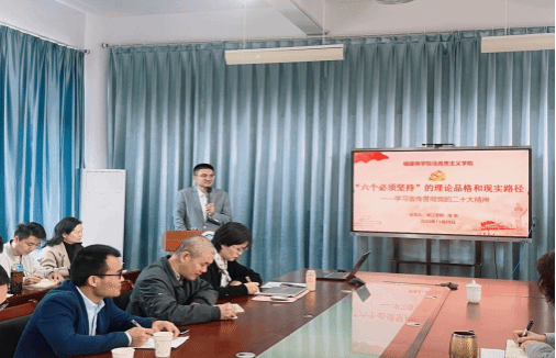 为深入学习宣传贯彻党的二十大精神,持续推进党的二十大精神进教材、进课堂、进头脑,实现与思想政治理论课教学深度融合。11月28日上午,全国模范教师、教育部党的二十大精神师生巡讲团成员、闽江学院马克思主义副教授陈东应邀莅临beat365官网开展题为《“六个必须坚持”的理论品格和现实路径》的主题报告,beat365正版唯一官网必一全体教师、校读书社40多位同学聆听了报告。