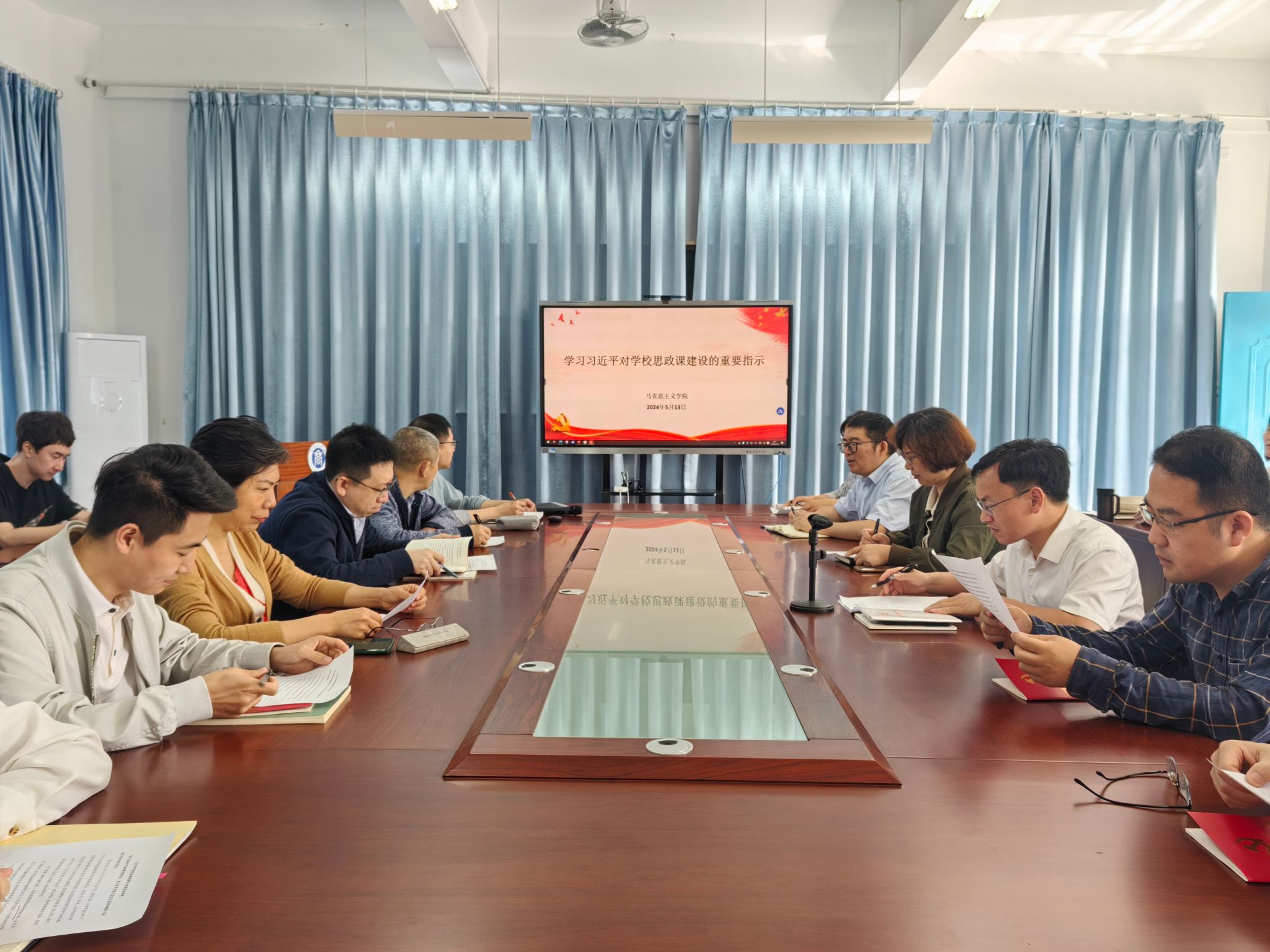 习近平总书记对学校思政课建设作出重要指示,在beat365官网教师及读书社学生中引起热烈反响。5月13日,学院召开学习会议,围绕如何推进新形势下思政课建设展开思考。学院全体教师及读书社部分学生参加。