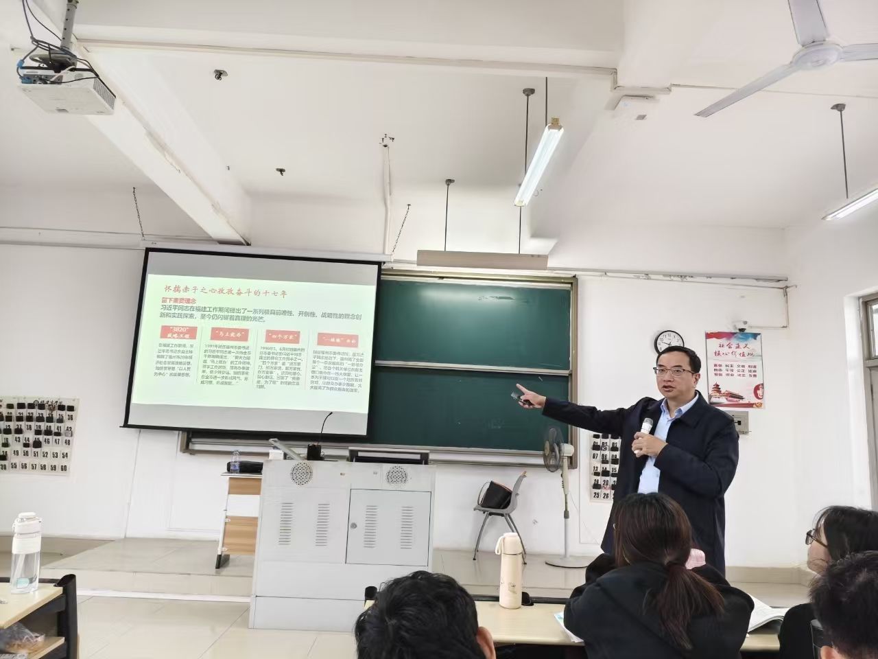 11月20日上午,学校党委副书记蒲文庆于马尾校区允能楼T4室,为2024级经济统计学专业学生讲授题为《牢记嘱托 感恩奋进—学习习近平总书记在福建考察时的重要讲话精神》的思政课。
