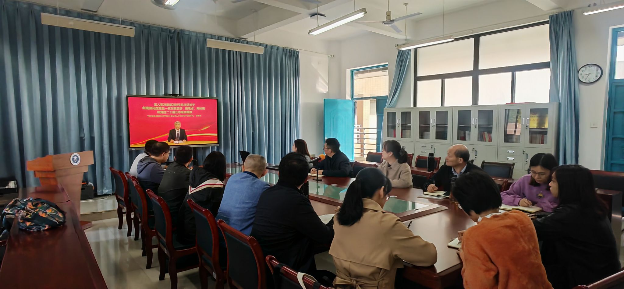9月2日,学院组织相关教师观看全省“党的二十届三中全会融入思政课”集备会。集备会结束后,参加学习的老师对示范教学主题内容、教学方法、教学策略等进行讨论、分析。教师们踊跃分享教学感悟,畅谈课堂体验,在将党的二十届三中全会精神融入到课程教学、调动学生参与课堂的积极性、教学和理论的结合、如何做到讲深讲透等方面进行充分的交流,与会教师一致表示,这种备课方式,讨论层层深入,集思广益,取长补短,让教师们收获良多,启发很大。