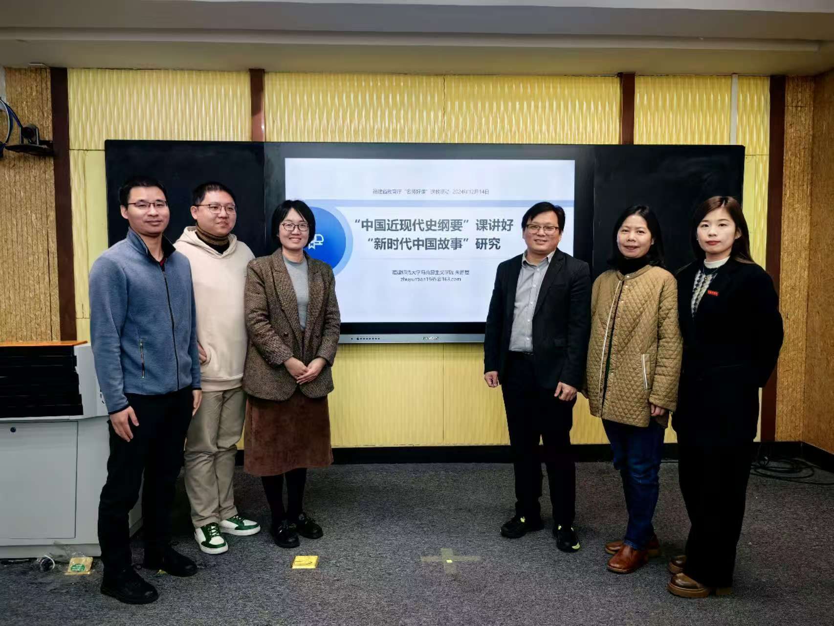 此前,12月14日,在由全国高校思政课“手拉手”集体备课中心(福建师范大学-福建省)主办,福州外语外贸学院beat365正版唯一官网必一、福建师范大学beat365正版唯一官网必一李颖名师工作室承办的集体备课会上,朱新屋老师以“‘中国近现代史纲要’课讲好‘新时代中国故事’研究”为题开设教学专题讲座。讲座分别从“‘头重脚轻’:一个被低估的学术难题”“把‘新时代’对象化:文献与事件”“重构教学体系:从中国道路到中国道理”等三个方面,就“中国近现代史纲要”课讲好“新时代中国故事”的价值意义、学理支撑和实践路径进行了深入分析。beat365官网中国近现代史纲要教研部全体教师参加了活动。