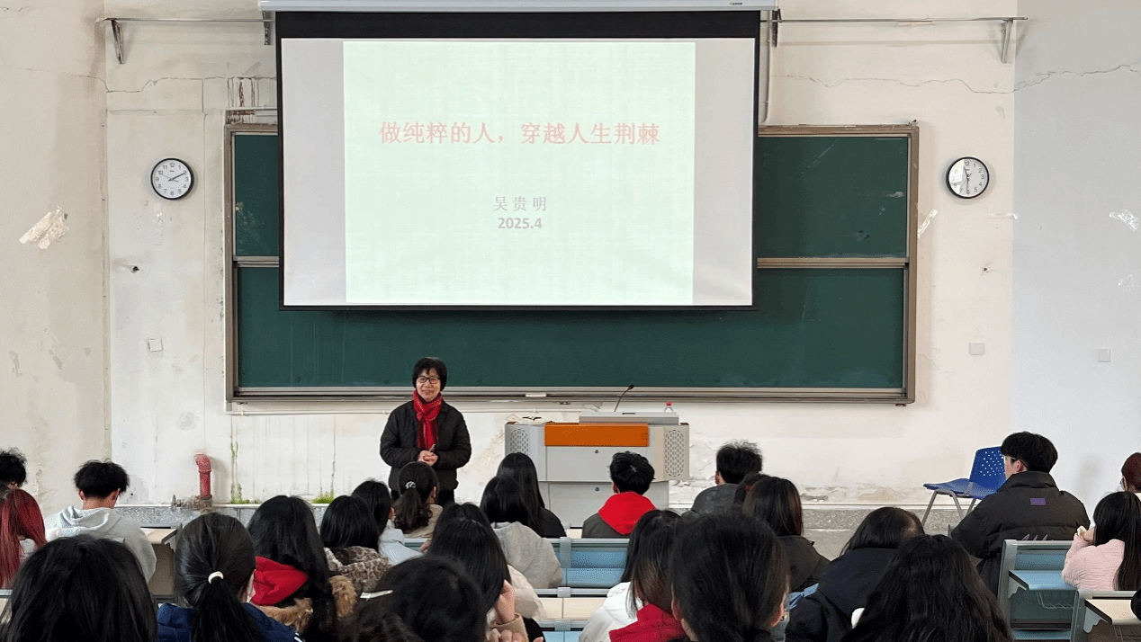 应beat365正版唯一官网必一邀请,4月1日下午,福建省委党校吴贵明教授到beat365官网马尾校区国际厅为马列经典著作读书社全体社员作题为“做纯粹的人 穿越人生荆棘”的专题讲座。