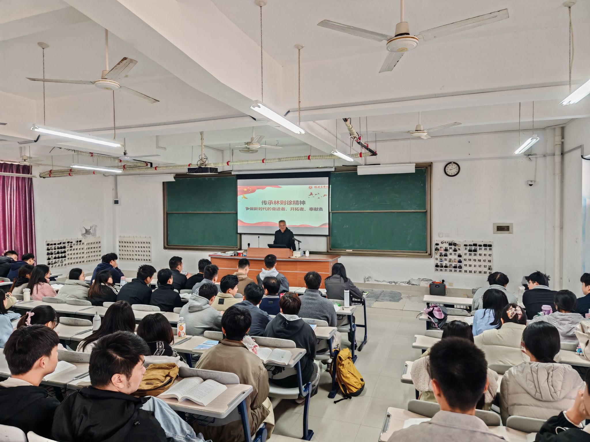 林宇峰从坚贞不渝的爱国主义精神和气贯长虹的民族正气、清廉刚正的高尚风范、“开眼看世界”的开拓精神等三个方面展开论述。他带领同学们回顾了民族英雄林则徐波澜壮阔的一生,希望同学们将林则徐身上体现出来的中华民族的伟大精神发扬光大,在新时代的征程中勇担使命,奋发有为,锐意进取。