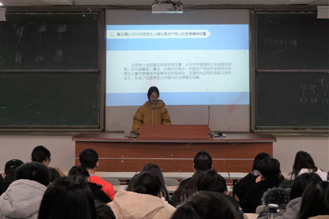 在宣讲活动中,杜炣姌同学首先围绕“新时代这样学习马克思”这一主题,指出新时代广大青年学生学习马克思主义要先从认识马克思这个人开始。马克思一生的理论贡献异常丰富,直至今日仍然值得我们去发掘和探索。同时,马克思主义理论是共产党人的宝贵精神财富,学好马克思主义理论才能让我们更加坚定共产主义信念。最后,习近平新时代中国特色社会主义思想作为21世纪的马克思主义,是青年学生的行动指南,我们要认真学习领会。
