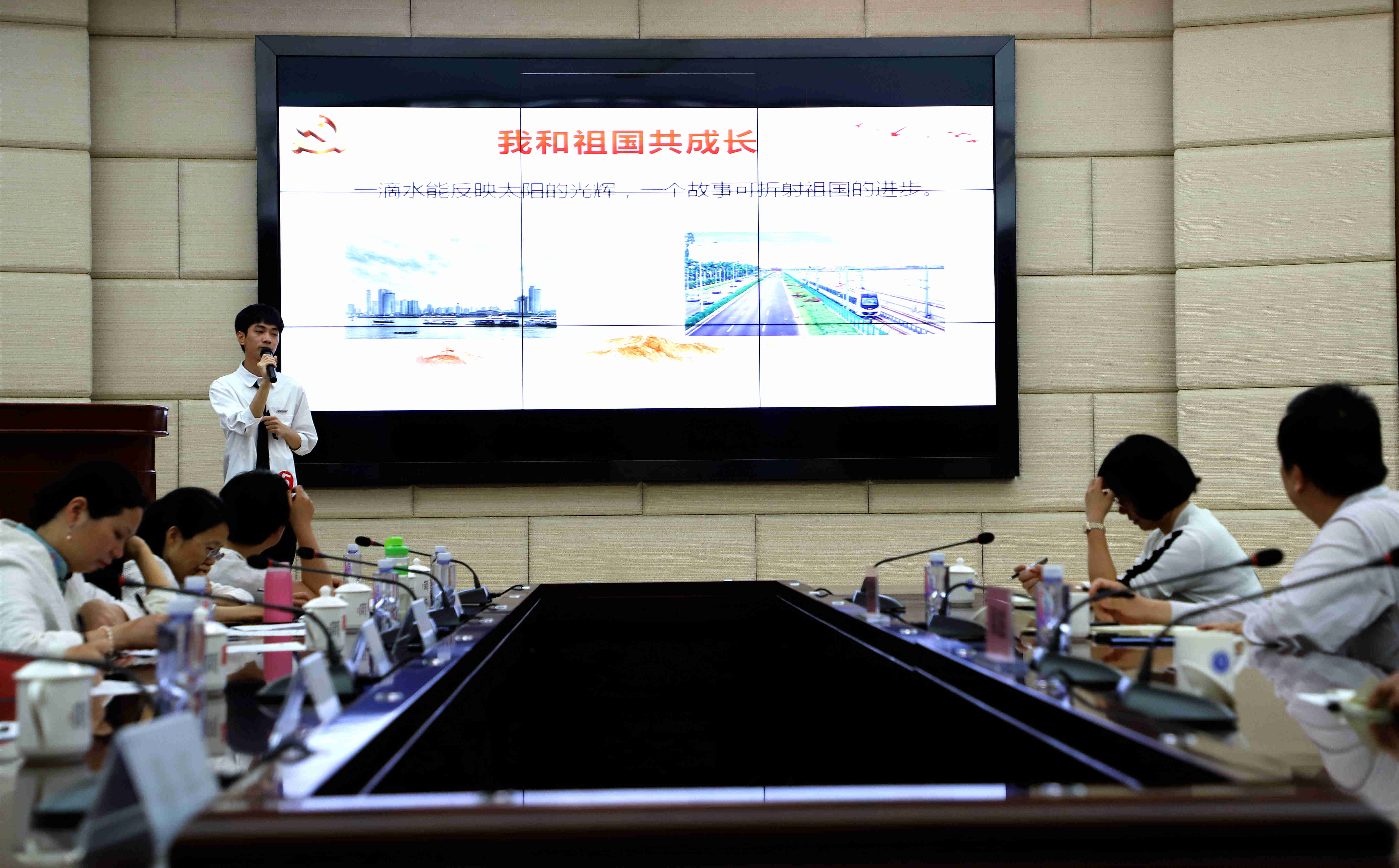 5月21日下午,beat365官网习近平新时代中国特色社会主义思想读书社,在连江校区明德楼视频会议室举办“我与祖国共成长”五月学习论坛总决赛。校党委书记刘剑津,副书记吴访益,beat365正版唯一官网必一全体教师,读书社学生代表等近100人参加了此次活动。
