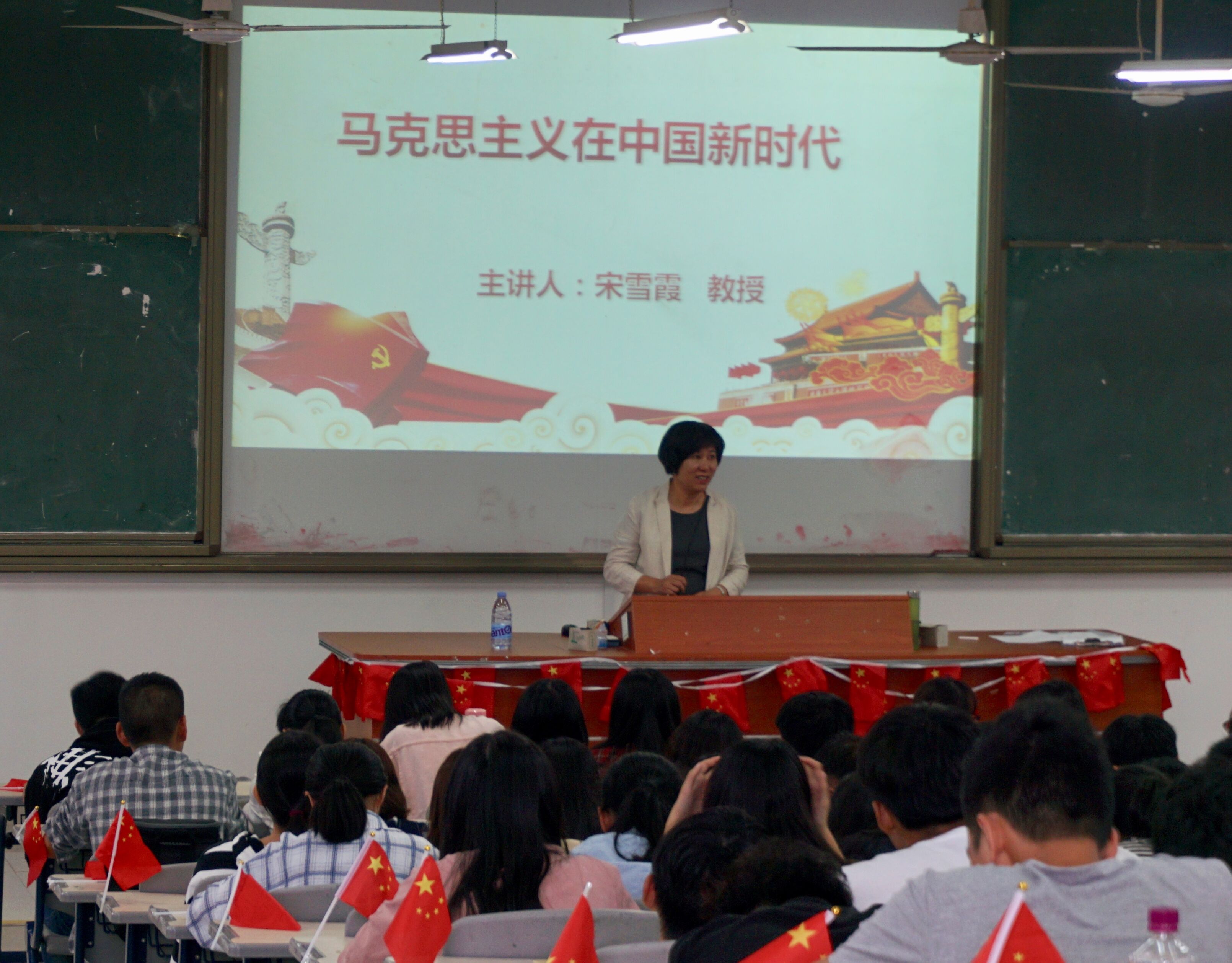 开班仪式结束后,福建工程学院beat365正版唯一官网必一宋雪霞教授为在场师生作了题为《马克思主义在中国新时代》的首场专题讲座。宋教授系统全面的介绍了马克思的平生、马克思信仰形成的四个阶段、继而引导同学们思考“到底什么是马克思主义?”她用拆分法告诉大家:“马克思主义中的‘马克思’为其创始人,‘主义’是核心的价值追求,把马克思所倡导的造福人民,为绝大多数人谋福利作为核心价值追求,就是马克思主义”。此外,宋教授深入浅出的剖析了当代中国的伟大社会变革,不是简单延续我国历史文化的母版,不是简单套用马克思主义经典作家设想的模板,不是其他国家社会主义实践的再版,也不是国外现代化发展的翻版。