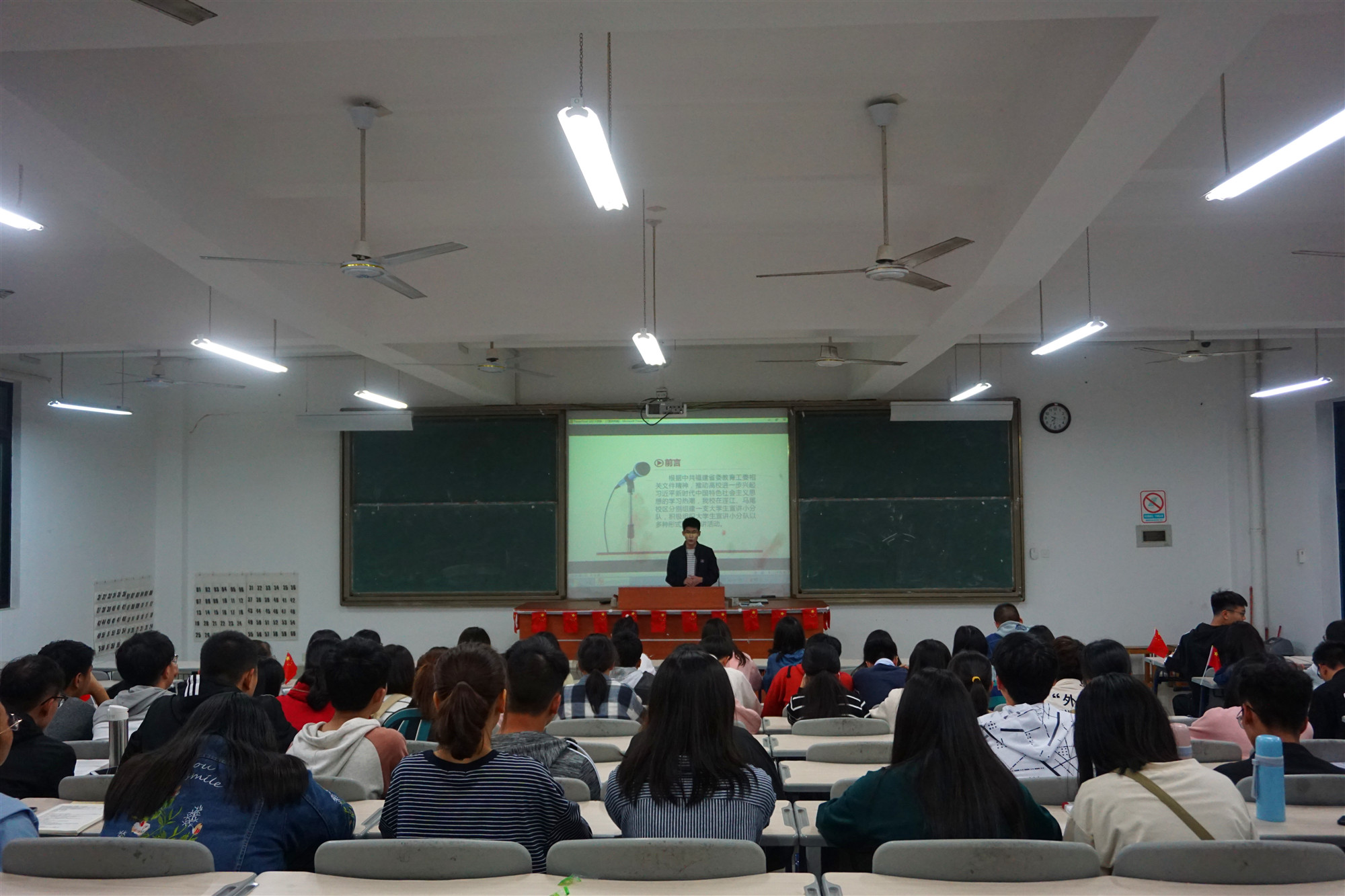 桂花飘香,秋雨微凉。10月21日晚,beat365正版唯一官网必一习近平新时代中国特色社会主义思想读书社学生宣讲小分队成员林威同学于连江校区诚信楼中阶一开展了以“坚定马克思主义信仰,不辱时代使命,不负人民期望”为主题的宣讲活动。参加此次活动的为读书社一班第三、四、五组的社员们近80名同学。
