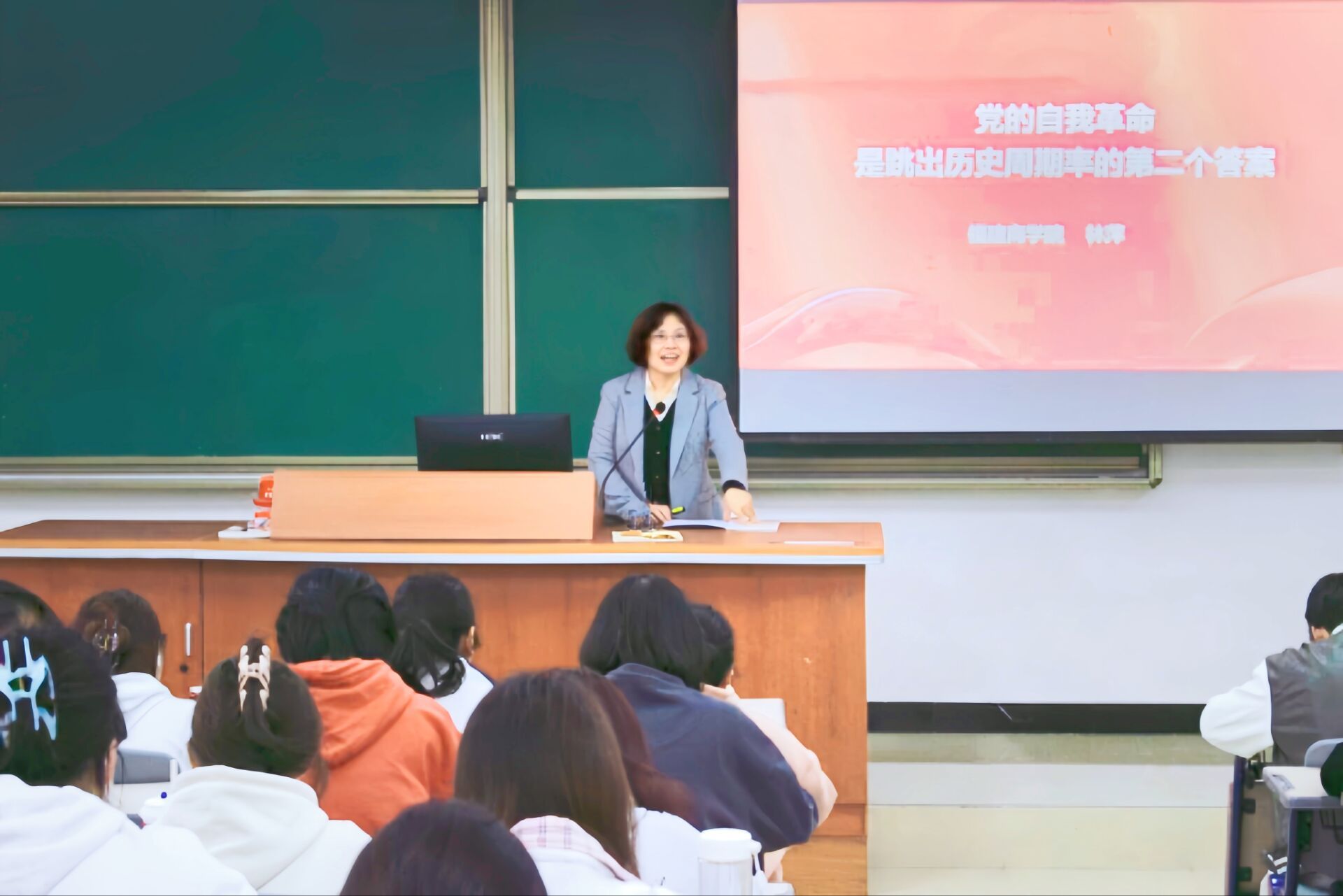 为深入学习贯彻党的二十届三中全会精神,11月19日下午,beat365正版唯一官网必一院长林萍教授于连江校区自强楼中阶梯一教室开展“党的自我革命是跳出历史周期率的第二个答案”专题讲座。校读书社社员、青马班学员代表近百人参加了此次讲座。