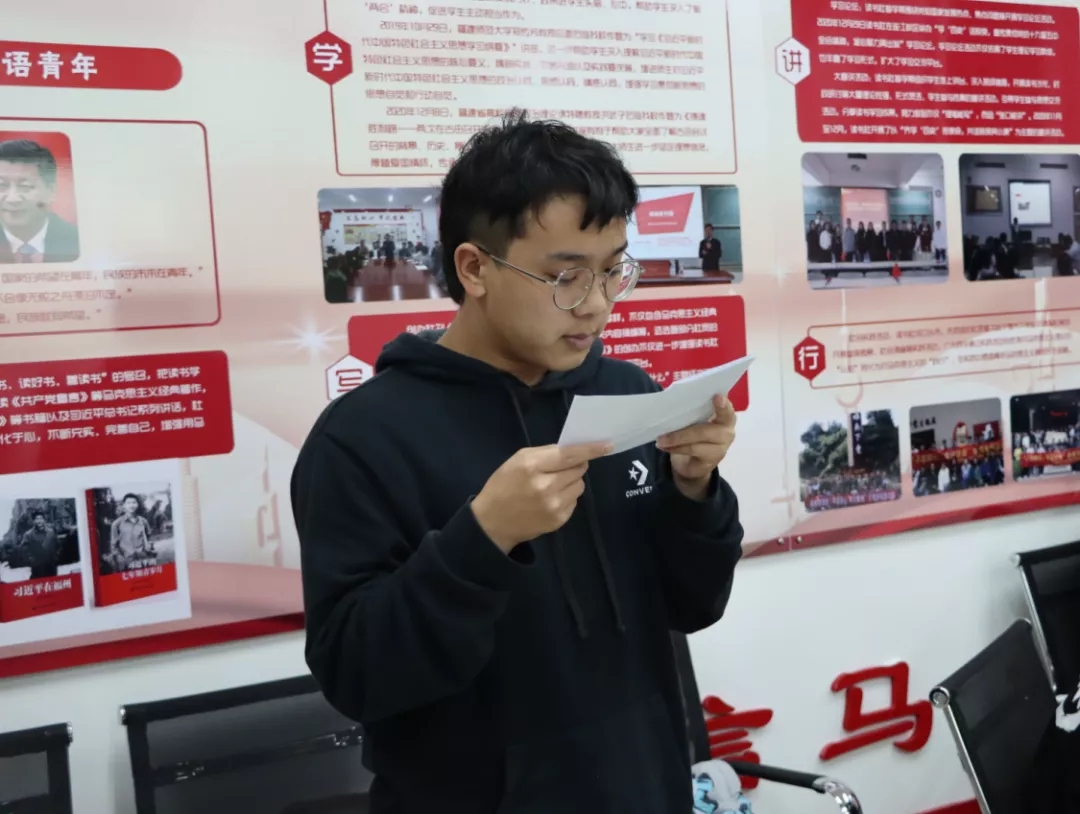 为进一步深入学习中国共产党百年奋斗重大成就和历史经验,深刻感受中国共产党人在中华民族伟大复兴征程中体现出的爱国情怀、高尚品格和精神风骨,汲取奋进力量,校习近平新时代中国特色社会主义思想读书社于2021年11月16日晚在连江校区自强楼114活动室开展读书沙龙活动。beat365正版唯一官网必一陈阳老师、叶陈钦老师以及读书社第五小组全体社员共40多人参加此次活动。活动由叶陈钦老师主持。