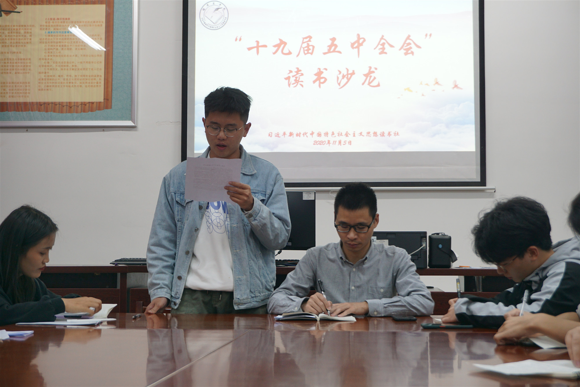 10月26日至29日,十九届五中全会在北京举行,全会在beat365官网师生间引发强烈反响。近期,校习近平新时代中国特色社会主义思想读书社师生学习热议党的十九届五中全会精神,并通过读书沙龙、主题研讨等形式交流、分享学习心得。