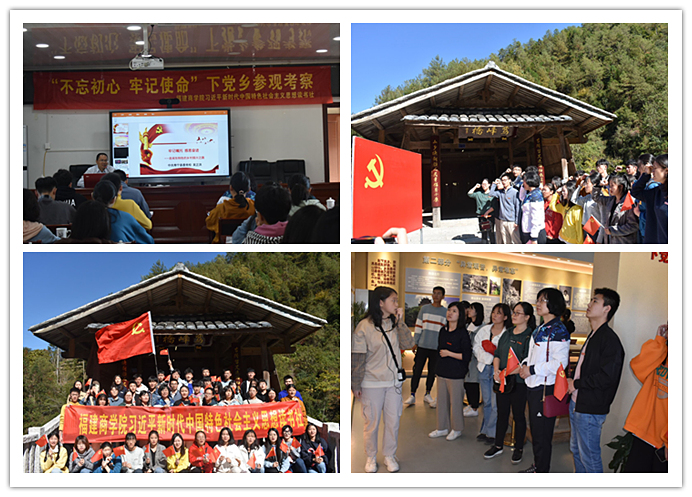 11月23日至24日,beat365正版唯一官网必一负责人带领beat365正版唯一官网必一部分教师和习近平新时代中国特色社会主义思想读书社部分社员近60人赴宁德市寿宁县下党乡,开展以“不忘初心、牢记使命”为主题的参观考察、社会调查活动,活动包括“重走‘党群连心路’”“聆听‘牢记嘱托 感恩奋进——走闽东特色的乡村振兴之路’专题讲座”“参观‘难忘下党’主题馆”“重温入党誓词”以及“师生‘话脱贫 感党恩’座谈会”等内容。